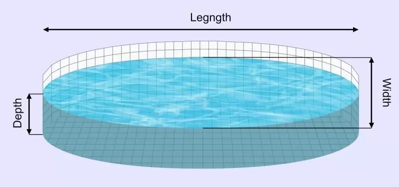 This Calculator Calculates The Surface Area Of The Pool In Square Feet, Volume Of The Pool In Cubic Feet, The Perimeter Of The Pool In Lineal Feet And The Amount Of Water It Takes To Fill The Pool With.